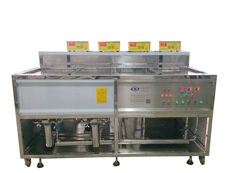 VGT-4036F金屬膜電容器超聲波清洗機VGT-4036F半自動超聲波清洗機清洗過程由人員控制,設備清洗主線由1個超聲波清洗槽、1個超聲波漂洗槽、1個超聲漂洗槽、1個離心熱風甩干槽。