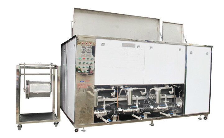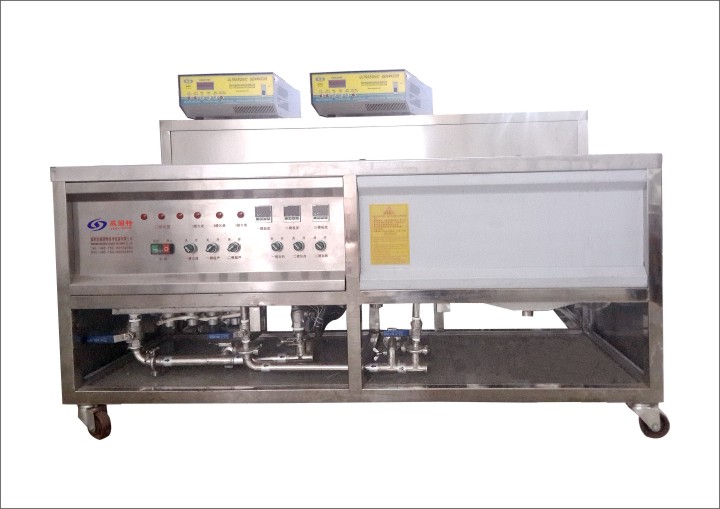 輪胎后輪組軸承座超聲波清洗機(jī)該清洗機(jī)主要由超聲波發(fā)生器、換能器、清洗槽、儲(chǔ)液槽、循環(huán)過(guò)濾系統(tǒng)、自動(dòng)恒溫加熱系統(tǒng)、拋動(dòng)系統(tǒng)、抽氣罩、冷水機(jī)、機(jī)架、電控柜等組成。
