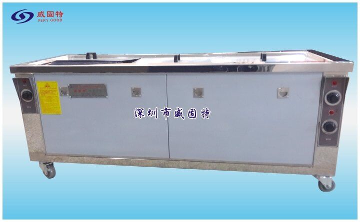 威固特4018F手動(dòng)膠塞超聲波清洗機(jī)威固特4018F手動(dòng)膠塞超聲波清洗機(jī)的清洗過程是由人員控制的,設(shè)備清洗主線由1個(gè)超聲波洗劑槽、1個(gè)超聲波純水漂洗槽、1個(gè)鼓泡漂洗槽、1個(gè)離心熱風(fēng)烘干槽組成的。