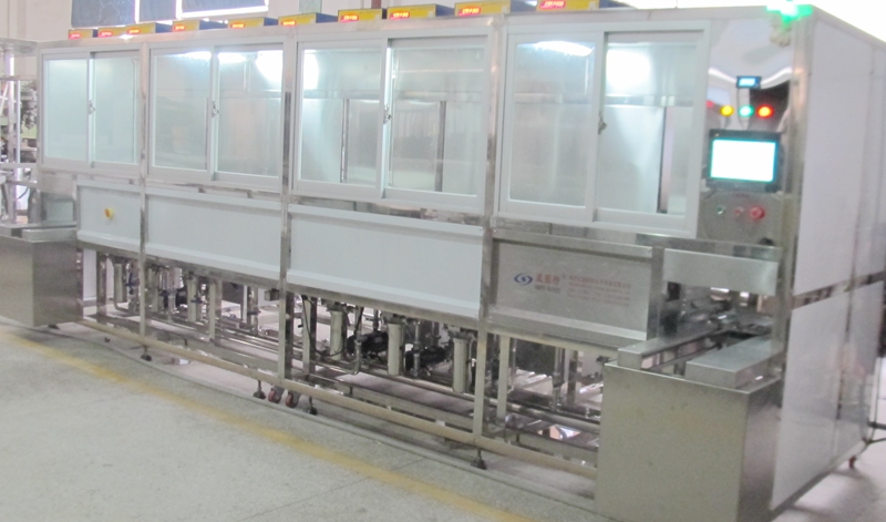 在清洗過程中工件通過超聲波高頻產生的“氣化現象”的沖擊和系統自身不停地作上下運動,增加了液體的摩擦,從而使工件表面的污垢能夠迅速脫落,實現其高清潔度的目的。